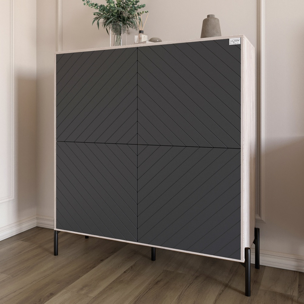 Шукаєте ідеальне рішення для зберігання речей, яке додасть елегантності вашому інтер'єру? Комод-пенал LION - це не просто меблі, а справжній витвір мистецтва, який поєднує в собі сучасний дизайн і практичність. Його стильний вигляд з чорними металевими ніжками та оригінальними кольорами привертає увагу і робить його центральним елементом будь-якої кімнати.