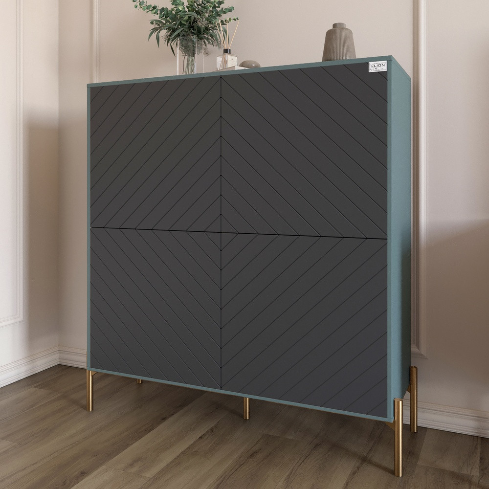 Вам потрібен стильний і практичний меблевий елемент для вашого інтер'єру? Комод-пенал LION з золотими металевими ніжками стане ідеальним рішенням для будь-якої кімнати. Його сучасний дизайн в поєднанні з елегантними кольорами граніт сірий і графітовий створює атмосферу розкоші та комфорту.